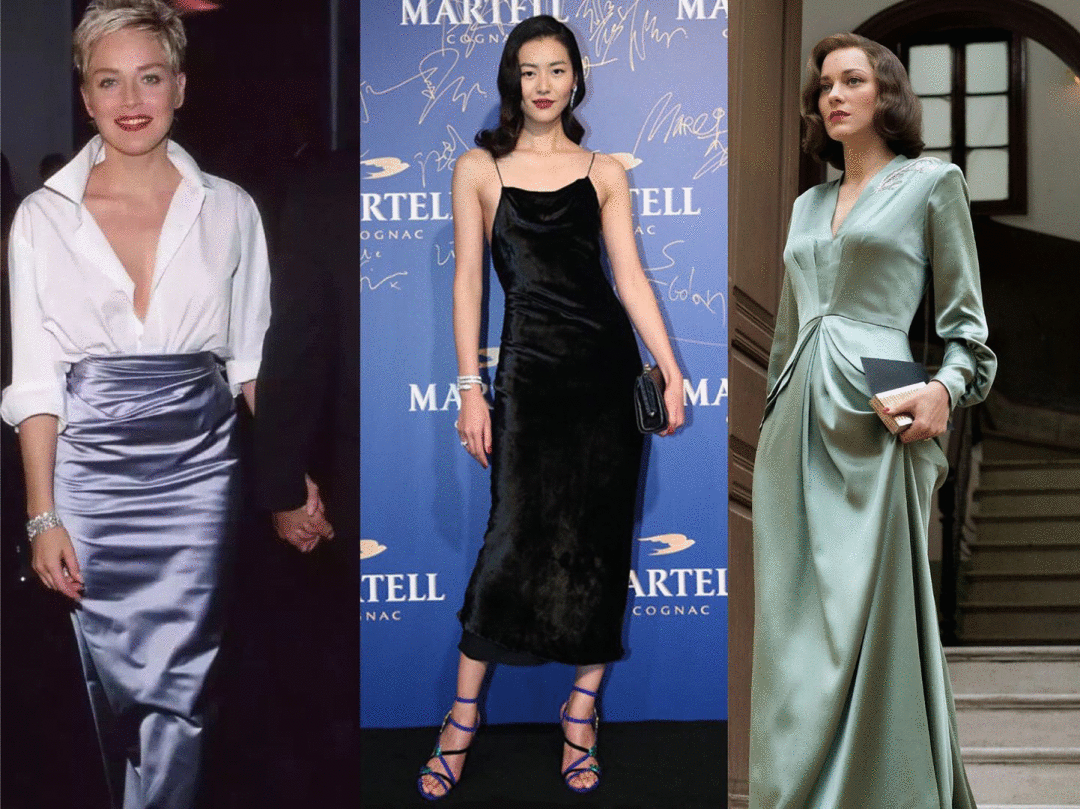 缎面最大的特点就是光泽感,因而显得贵气优雅,所以不少女明星利用缎面来凸显自己的气质和女人味。