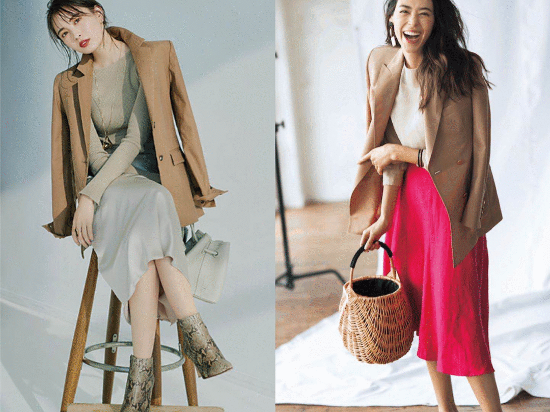 搭配西装外套,丝缎裙轻盈的质感与西装的干练相平衡,立刻变的知性优雅。