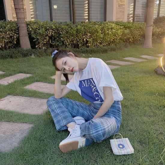 略宽松版型更能强调格纹裤的休闲感,和运动风单品随意配,还蛮随意轻松的。