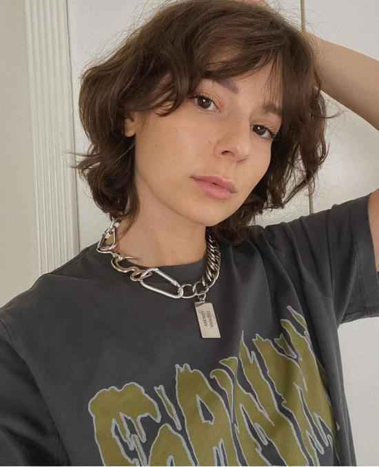 如果说金色的大项链增加了look的时髦感,那换成银色大项链加上随意的T恤,就是一身boylish风格的酷炫穿搭。和随意的短发搭配在一起,穿出“小男孩”的帅气。